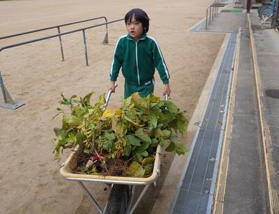 先日の2年生に続いて、1年生も5年生も次々と学級園の芋ほりをしました。どのくらい芋ができているのか心配しながら掘っていきました。収穫の秋です。どんな料理になるのでしょうか。とても楽しみです。