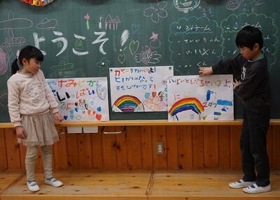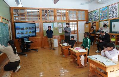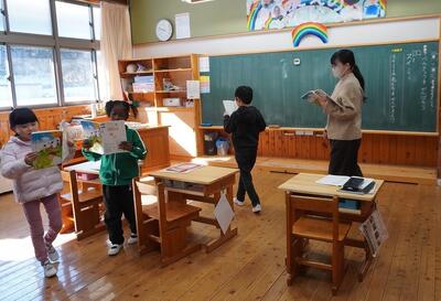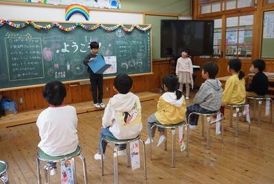 豊根小学校入学説明会を行いました。来年度入学する年長園児とその保護者の方に来ていただき、学校からの説明と1年生との交流会を行いました。保護者の方には、必要事項を説明させていただき、その間に新入児には、1年生が学校の様子を教えてあげました。あいさつの仕方や朝の準備などの1日の流れを説明したり、授業や1年間の行事について写真をもとに説明したりしました。その後、すごろくやかるたで一緒に遊びました。最後に、学校案内をしました。1年生は、この日のために一生懸命に準備してきました。この1年間で学んだことを生かして心を込めて説明することができました。来年度は、きっとお兄さん、お姉さんとして成長した姿を見せてくれると思いました。新1年生の入学を楽しみに待っています。