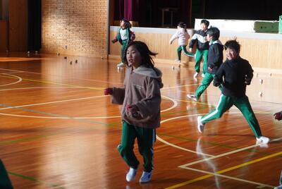 朝の元気タイムの時間に、体育委員会主催による「先生から逃げろ」が行われました。本来は、雪合戦でしたが、最近の暖かさで雪がなくなってしまったので、体育館で紅白玉を使って行いました。はじめは1~3年児童対女性の先生方、次に4~6年児童対男性の先生方、最後に全校児童対全職員で行いました。子どもたちも職員も真剣勝負でとても盛り上がりました。今回もまた、全校で楽しめるように工夫していました。体育委員会のみなさん、全校のために企画や運営を進んで行ってくれてありがとうございました。