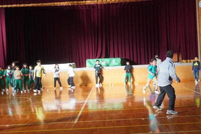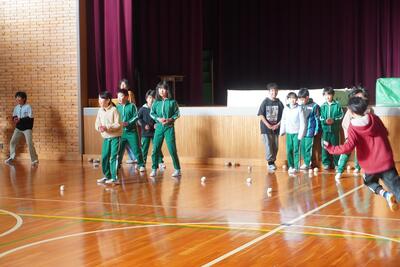 保健給食員会が主催して、調理員さんへ感謝する会を開きました。委員会の子が司会をして、はじめに、全校児童から集めた調理員さんへの質問をしました。その中には、子どもたちの好きな「かえり大豆」のつくり方もありました。調理員さんが丁寧に答えてくださり、家でも作ってもらおうと思う子どもたちでした。その後、「麻婆豆腐班」と「カレー班」に分かれて一緒に楽しくドッジボールをしました。毎日の給食を楽しみにしている子どもたちの感謝の気持ちを伝えられました。調理員さんいつもありがとうございます。