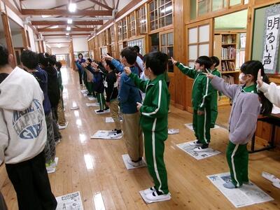 この冬、小中合同で運動をしようと、毎週のように小中合同長縄跳びを行ってきました。そして、今回が最後となりました。今回は、中学生が主催で行いました。どの子も、上手に跳べるようになってきました。中学生のみなさんが小学生に優しく教えてくれたおかげです。中学生のみなさんに感謝です。ありがとうございました。