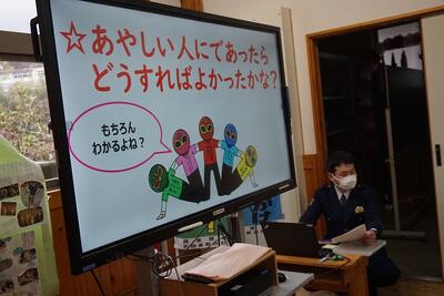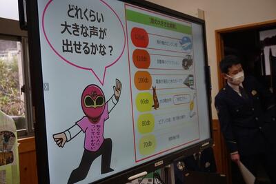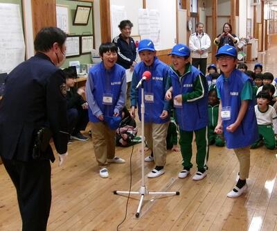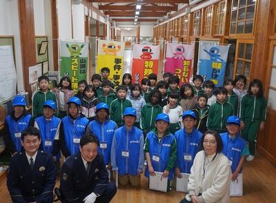 防犯少年団のまとめの会を行いました。2年間の防犯少年団の委嘱を受け、様々な活動をしてきましたが、今回が最後の活動となりました。まとめの防犯クイズに答えたり、危険を感じたときに「助けて」と大声が出るように大声測定をしたりして、活動を振り返ることができました。これからも、自分や地域の方々の安全を守り常に気をつけて生活していきたいです。設楽警察署の方々、坂宇場駐在の平山さん、ご指導ありがとうございました。