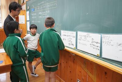 図書委員会主催の『本のクイズ大会』を行いました。図書委員が「いろいろな本に出会い、本に親しんでもらいたい」というねらいをもって企画しました。5チームに分かれて、図書委員が考えた本にまつわるクイズに答えていきました。なかなか難しく、どの班もよく話し合って答えを出していました。正解したときには大喜びでした。全校児童が協力して会を盛り上げようとしていました。得点を累計していき、1、2班が優勝しました。図書委員会のみなさん、企画・運営をありがとうございました。本を好きになってくれるとよいです。