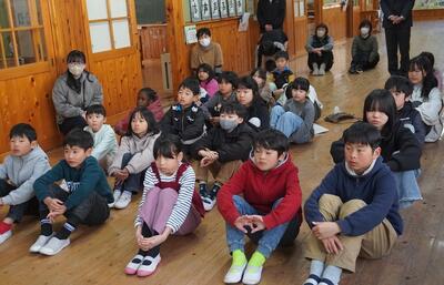全校朝礼の時間に、執行員会から「あいさつキャンペーン第2弾」の表彰式がありました。後期、たくさんあいさつをしてポイントが多かった子どもに表彰状を送りました。1回一人にあいさつをすると1ポイントですが、全部で800ポイントもたまった子どももいました。次に、保健給食委員から「ふわふわことば」の説明がありました。本年度のまとめとして、「ふわふわことば」をみんなに書いてもらって掲示することになりました。6年生との最後の時間をあたたかい心で過ごそうということで行います。最後に、本年度、豊根村の緑のふるさと協力隊として活躍された木村さんがお別れのあいさつに見えました。1年間、豊根村・豊根小学校の子どもたちのためにいろいろとご尽力されました。「豊根村活動報告書」をいただきました。子どもたちも興味津々でした。木村さん本当にありがとうございました。
