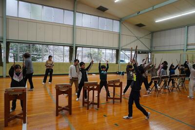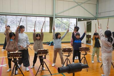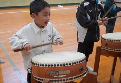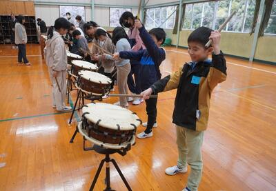 6年生の卒業を迎え、和太鼓のポジションの変更に伴う引継ぎを行いました。新たに2年生が参加し、6年生が中心となって、太鼓のたたき方の基本等を見てくれました。今年度も一年間かけて、しっかりと仕上げてくれましたが、スタート時を思い起こすと、この引継ぎから始まっています。一年間の大きな成長を感じます。新しいポジションとなり、不安はあっても、きっと頑張って向上してくれるように思います。来年度の発表が楽しみです。