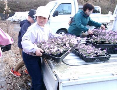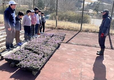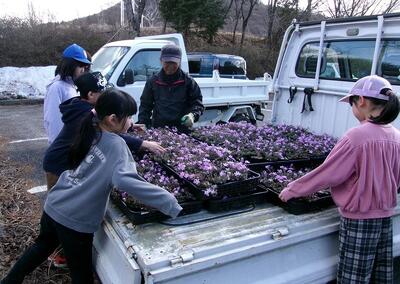 3年生が総合的な学習の時間に育てた芝桜を茶臼山に届けに行きました。軽トラックいっぱいになりました。470株ありました。茶臼山の方も、「よく育っているね。」と褒めてくださいました。1年間お世話になった方々へのお礼もしてきました。4月になったら、『令和7年度豊根小学校3年生』の一区画をつくってくださり、植えてくださるそうです。5月ごろが見ごろだそうです。シーズンになったら、見に行きたいですね。