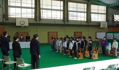 4月9日、令和8年度入学式・始業式を行いました。本年度は、新入生が6名入学しました。呼名をされた時の返事もとても元気よく、いろいろな人のお話をしっかり聞いている姿にとても感心しました。これから一緒に学んでいくことがとても楽しみになりました。2~6年生は一つずつ進級しました。6年生代表が、新入生歓迎の言葉を述べ、新しいお友達を温かく迎える思いを伝えることができました。その後、各教室で、学級開きを行いました。どの学級も新年度に向けた意気込みを感じました。今年度は、全校35名でスタートします。