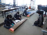 まだまだ雪が残る運動場に、保育園児が遊びに来ました。すると、2年生が運動場に飛び出して、一緒に遊んであげました。自分たちが作ったかまくらをそりすべり用の山に改良したり、階段を作ったりしてそりすべりがしやすいように工夫していました。保育園児のおかげで一緒に自分たちも楽しめました。