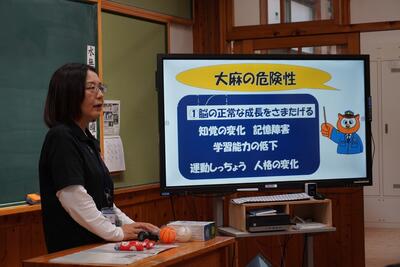 5・6年生を対象に薬物乱用防止教室が開かれました。設楽警察署の方など5名の講師の方に、薬物の危険性などを教えていただきました。危険な薬物を勧められたときにどうやって断るかを考えたり、薬物のサンプルや薬物依存についてのパネルを見せていただいたりしました。将来に向けて貴重な学習の機会となりました。
