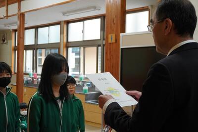 全校朝礼で、児童会執行委員、各委員会委員長、3年生以上の学級代表の任命式を行いました。任命状を受け取ると、これから学校や学級を引っ張っていく自覚とやる気に満ちた顔が見られました。代表として、全校のみんなと力を合わせてよりよい豊根小学校をつくっていってくれることを期待します。