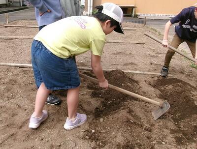 3年生が、本年度一番のりで、学級園に種まきを始めました。みんなが鍬をもって少しずつ畝をつくっていきました。マルチも手際よくかけてから植えていきました。3年生は、大豆、オクラ、ヒマワリ、ホウセンカの4種類を植えました。大きく育ってほしいですね。