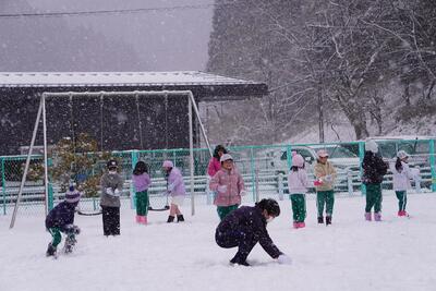 今シーズン一番の積雪です。朝の元気タイムの時間に全校で雪合戦をしました。まだ、雪が降り続ける中、子どもたちは、思い思いに雪玉を作り、いろいろな子に投げていました。あたり一面雪景色の中、元気いっぱい遊びました。とても楽しそうに全校児童が交流しました。