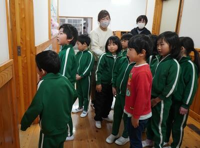 新入児体験入学・入学説明会を行いました。来年度入学する年長園児とその保護者の方に来ていただき、学校からの説明と1年生との交流会を行いました。保護者の方には、必要事項を説明させていただき、その間に新入児には、1年生から学校の様子を教えてあげました。1年生は、11人が分担して、あいさつの仕方や朝の準備などの1日の流れを説明したり、一緒に遊んだりしました。授業では、春夏秋冬でどんなことをするのか写真を使って説明したり、学校の各教室の説明をしたり、音楽で使う楽器の紹介をしたりしました。どの子も、一生懸命に準備してこの日を迎え、この1年間で学んだことを生かして心を込めて説明することができました。来年度は、きっとお兄さん、お姉さんとして成長した姿を見せてくれるように思いました。新1年生の入学を楽しみに待っています。
