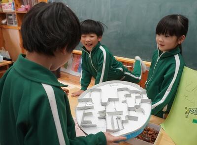 1年生が、「秋探し」で集めてきたどんぐりや松ぼっくりを使ったおもちゃを作りました。今週は、そのおもちゃで遊んでもらおうと、全校児童を1年生教室に招待しました。水曜日は2年生、木曜日は3・4年生、金曜日は5・6年生が遊びに行きました。どのおもちゃも工夫してあり、訪れた上級生たちはとても楽しそうに遊んでいきました。