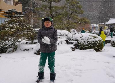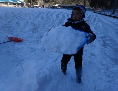 今シーズン初めてまとまった雪が降りました。学校の運動場もあっという間に一面雪景色に。子どもたちは大喜びで、放課になると外へ出て元気いっぱい雪遊びを楽しみました。