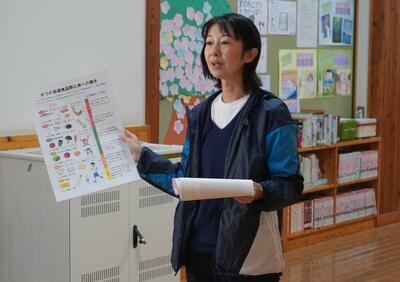 金田光代先生を講師としてお招きし、今年度2回目の合唱講習会を行いました。今回は、学芸会の全校合唱で発表する「いのちの歌」を見ていただきました。やさしい声の出し方や口の開け方、息の出し方など、基本的なことから、顔の表情までポイントを教えていただき、とても上手になりました。光代先生ありがとうございました。