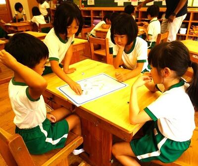 1・2年生の外国語活動の時間に、ナンバーすごろくをしました。さいころの出た目を英語で言いながら進みます。楽しみながら英語の学習ができました。