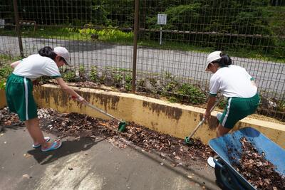 プール学習に向けて、3年生から6年生の児童と職員とでプール掃除をしました。フロアの落ち葉や石や泥などをとって磨いたり、小さいプール内の汚れをブラシでこすったりしてきれいにすることができました。外のトイレやシャワー通路もほうきで掃いてきれいにしました。午後から中学生が、深いプールの掃除をしてくれました。