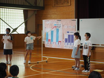 保護者会・学級懇談会・学校保健委員会を行いました。学校保健委員会では、保健給食委員会の子どもたちが、手洗いについての様子や課題などをまとめて発表してくれました。写真等を活用し、とても分かりやすいものでした。そのあとで、親子で、夏休みの生活についての約束事を決めました。規則正しい生活習慣を身につけるよい機会ですので、親子で決めた内容をしっかり守って過ごしてほしいです。