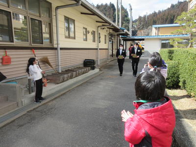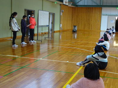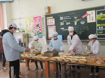 6年生が卒業を迎え、給食当番の世代交代をしました。令和4年度体制で経験を積み、その中で、6年生に教えてもらいながら、4月を迎えるようにします。これまでは、5、6年生で取り組んでいましたが、6年生10名が卒業するので、人数が足りなくなるため、現在の3年生も参加します。今年度は、コロナ対策のため、高学年で対応していましたが、来年度は、4、5、6年で進めます。また、コロナ対応でなければ、1~6年の各学年で取り組んでいたので、あらためてコロナ禍の影響を感じる機会となりました。