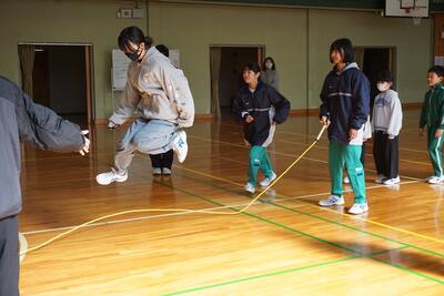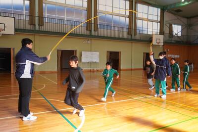 この冬、小中合同で運動をしようと、毎週のように小中合同長縄跳びを行ってきました。そして、今回が最後となりました。今回は、中学生が主催で行いました。どの子も、上手に跳べるようになってきました。中学生のみなさんが小学生に優しく教えてくれたおかげです。中学生のみなさんに感謝です。ありがとうございました。