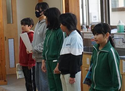全校朝礼で、豊根小学校に対して受けた各種の表彰を紹介しました。「第3回あいち食農教育表彰」奨励賞、「学校安全教育」優良校、「200日間自転車無事故無違反ラリー」表彰です。特に、「第3回あいち食農教育表彰」では、今年度、4年生が総合的な学習の時間に取り組んできた、大豆を育てて地域の郷土料理である金山寺みそを作って普及活動に貢献したことが認められました。