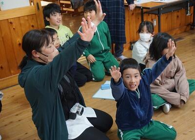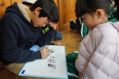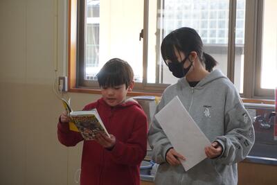 まだまだ雪が残る運動場に、保育園児が遊びに来ました。すると、2年生が運動場に飛び出して、一緒に遊んであげました。自分たちが作ったかまくらをそりすべり用の山に改良したり、階段を作ったりしてそりすべりがしやすいように工夫していました。保育園児のおかげで一緒に自分たちも楽しめました。