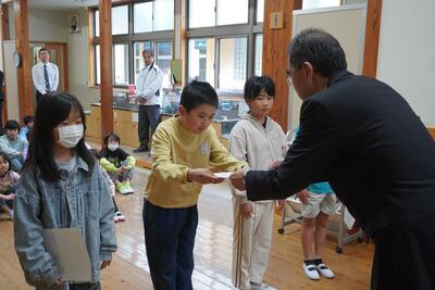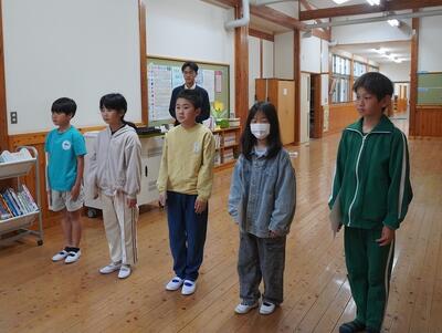 全校朝礼で、令和8年度前期児童会執行委員、各委員会委員長、3年生以上の学級代表の任命式を行いました。任命状を受け取ると、これから学校や学級を引っ張っていく自覚とやる気に満ちた顔が見られました。代表として、全校のみんなをリードし、力を合わせてよりよい豊根小学校をつくっていってくれることを期待します。