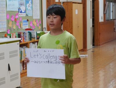 全校朝礼で、後期児童会執行委員・各委員会委員長の任命式と後期児童会のスローガンの発表を行いました。後期のスローガンは、「Let's challenge ~みんなでつくる豊根小学校~」です。これから執行部として、そして、委員長として学校を引っ張っていく自覚とやる気に満ちた表情で頼もしく感じられました。全校のみんなと力を合わせてよりよい豊根小学校をつくっていってくれることを期待します。
