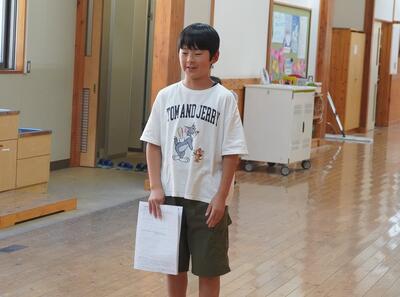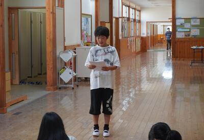 後期委員会の全体会を行いました。執行委員会、体育委員会、図書委員会、保健給食委員会のそれぞれの目標や取組について質疑を行いました。執行委員会のスローガンは「Let's Challenge ~みんなでつくる豊根小学校~」です。あいさつキャンペーン第2弾を企画してくれます。体育委員会のスローガンは「体を動かすとよねっこ」です。全校で遊べる企画を考えてくれます。図書委員会のスローガンは「We とよねっこ love books」です。読み聞かせを開いてくれます。保健給食委員会のスローガンは「元気に健康とよねっこ」です。冬場の健康に気をつけて手洗い・うがいを呼びかけます。
