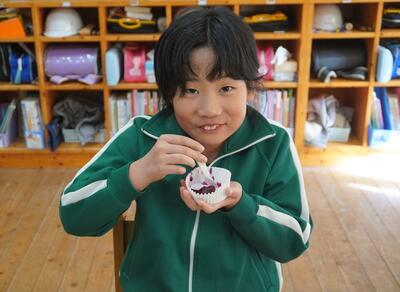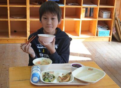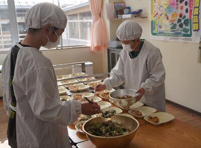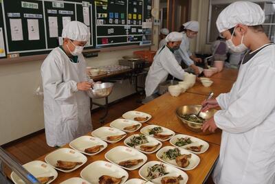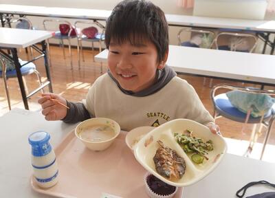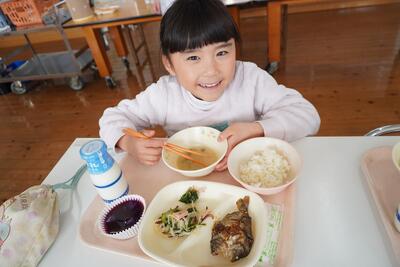 1月20日は、「愛知を食べる学校給食の日」です。メニューは、①豊根米ごはん、②にじますのごまソース、③春雨サラダ、④粕汁、⑤ブルーベリーゼリーです。①のお米はミネハルカという品種のお米です。②のにじますは愛知淡水で養殖されています。③には、豊川市産のアラゲキクラゲが入っています。④の食材の酒粕は関谷酒造でつくられています。⑤のブルーベリーはあさがね農園さんのブルーベリージュースを使っています。すべての愛知県産の食材をおいしくいただきました。