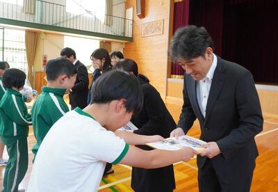 4月の人事異動により転出された5人の先生方の離任式を行いました。先生方には、豊根小学校を支えていただき、本当にお世話になりました。子どもたちも真剣にお話を聞き、代表児童がお礼の言葉とお花をお贈りしました。その後の学級お別れ交流では、最後のひとときを楽しみました。子どもたちは、この出会いと別れを大切にしてくれると思います。5人の先生方が豊根小学校のために力を尽くしてくださったことに心から感謝申し上げます。本当にありがとうございました。
