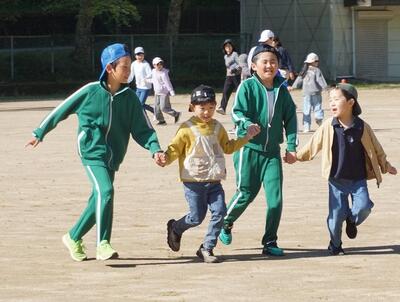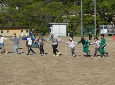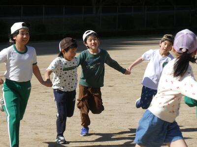 元気タイム「手つなぎ鬼」 投稿: 校長 (04/22) 毎週水曜日の朝の時間に元気タイムを行っています。今回は、「手つなぎ鬼」を行いました。最初は2人組でしたが、だんだんと鬼の人数が多くなっていくと、動きを合わせて、追いかけていました。楽しく体を動かしました。 Tweet -